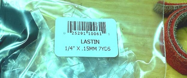 Mandala Crafts sells 33 yard spools of 5/32 elastic tape for about $9. This material is advertised as a thermoplastic, but doesn’t mention the Lastin brand. The material is clear compared to the slight opaque of Lastin tape, and the material can be stained with permanent felt pen. While useful, it suggests more than a single type of thermoplastic elastic tape exists, so you’ll need to try a couple to see which you prefer.