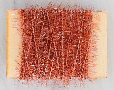 It’s a search engine nightmare, and tracking down the different types resold to us fly tiers is a real headache. You can find it under “eyelash” yarn, iridescent chenille, “scrubby” yarn, iridescent chenille thread, as well as using the familiar, “cactus” or “ice” chenille. Numerous vendors exist, many of which are in Europe, and use a different nomenclature for these products than we do. Mylar is called Lurex in Europe, so the search string changes depending on which continent you’re on. In addition there are many colloquial names like, “Cactus” chenille, “Ice” chenille, “Iridescent” Chenille, “tinsel” chenille, “Glass” Chenille, “Mylar” chenille, “Estaz”, and Lurex Chenille, Lurex Garland, among others. It’s made with a variety of materials, some with soft plastic like Estaz, or Kreinik’s “Micro Ice Chenille”, and some flavors feature a much coarser plastic, which we tend to call “Cactus” chenille.